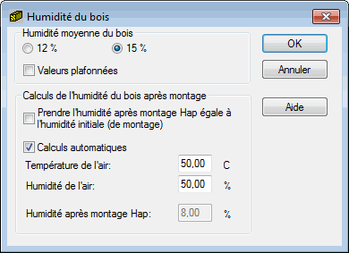 - Humidité du bois après montage ; il existe trois méthodes permettant de définir le paramètre Hap :