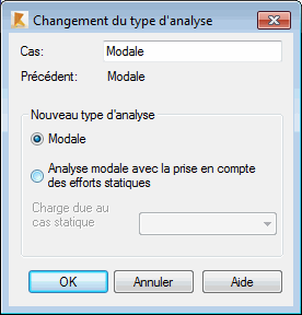 Utilisez cette boîte de dialogue pour modifier le type d'analyse et le définir sur Modale ou Analyse modale avec la prise en compte des forces statiques.
