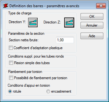 Cette option permet de définir les paramètres réglementaires avancés du type de barre acier. Pour accéder aux paramètres, cliquez sur le bouton Plus situé dans la boîte de dialogue Définition des barres - paramètres.
