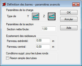 Cette option sert à définir les paramètres réglementaires supplémentaires pour les barres acier conformément aux normes CAN/CSA-S16.1-94, CAN/CSA-S16-01 + Supp. N° 1 (2005), CAN/CSA-S16-09 et CAN/CSA-S16-14. Pour accéder aux paramètres, cliquez sur le bouton Plus situé dans la boîte de dialogue Définition des barres - paramètres.