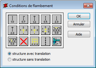 Sélectionnez l'une des icônes avec les conditions d'appui appropriées à l'extrémité pour spécifier automatiquement le coefficient de longueur de flambement.