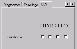 Sélectionnez l’onglet ELS dans la boîte de dialogue Diagrammes (MEF) pour ajuster les paramètres de présentation des calculs de la fissuration de la poutre-voile.