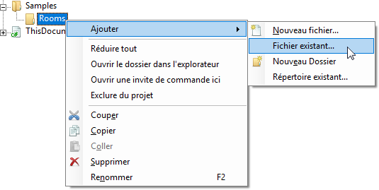 Nom du dossier. Dans cet exemple, le nom du dossier est Sample. Cliquez ensuite avec le bouton droit de la souris sur l'entrée du dossier Samples, puis choisissez à nouveau Ajouter