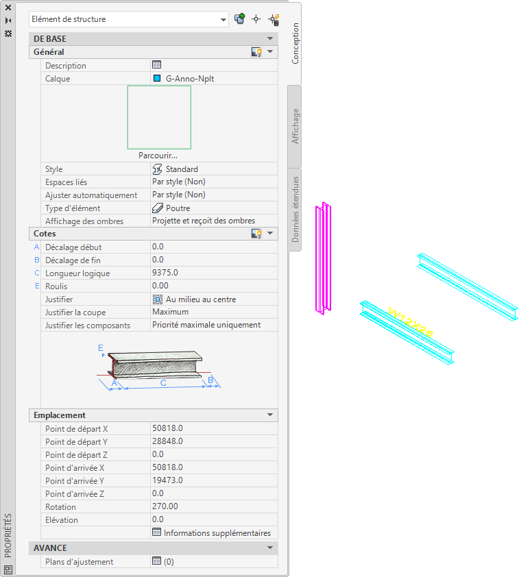 Le cas échéant, modifiez les éléments structurels dans AutoCAD Architecture. Pour plus d'informations, recherchez "Eléments de structure" dans l'aide AutoCAD Architecture