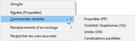 - Cliquez avec le bouton droit de la souris dans le dessin et choisissez Commandes récentes