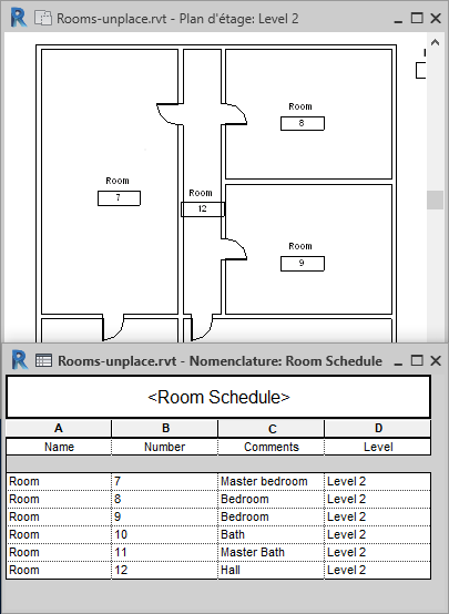 Après avoir créé des pièces, vous pouvez les supprimer d'un modèle de bâtiment de manière temporaire ou permanente.