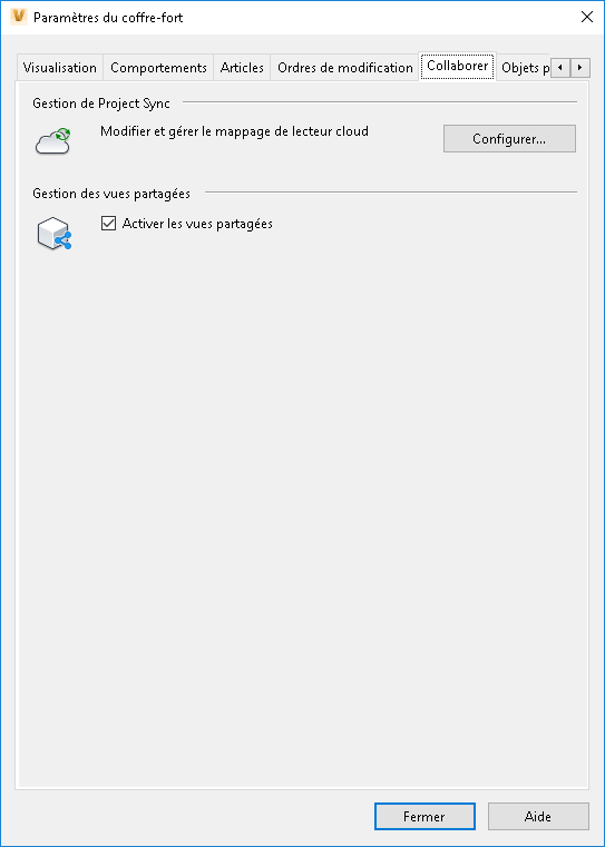 2. Dans la boîte de dialogue Paramètres du coffre-fort, cliquez sur l'onglet Collaborer.