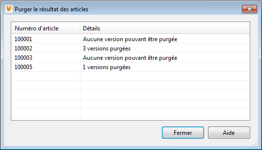 Examinez les détails d'une purge dans la boîte de dialogue Purger le résultat des articles.