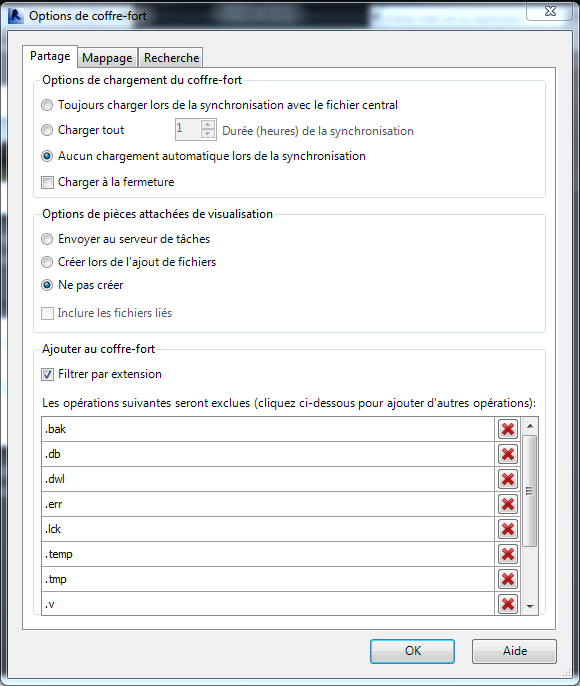 - Toujours charger lors de la synchronisation avec le fichier central : chaque fois que la commande de synchronisation avec le fichier central est lancée, une nouvelle version du fichier est ajoutée au coffre-fort.