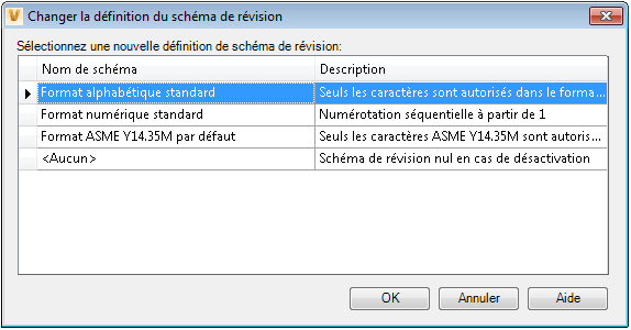 - Dans la boîte de dialogue Changer la définition du schéma de révision, sélectionnez le nouveau schéma de révision que vous souhaitez attribuer à l'article sélectionné. Cliquez sur OK.