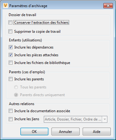 Lorsque vous masquez la boîte de dialogue Archiver, vous pouvez spécifier l'incidence qu'aura l'opération du coffre-fort correspondante sur les fichiers associés.