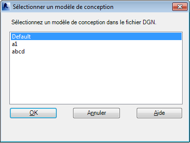 - Si vous importez un fichier DGN qui comporte plusieurs modèles, la boîte de dialogue Sélectionner un modèle de conception s'affiche.