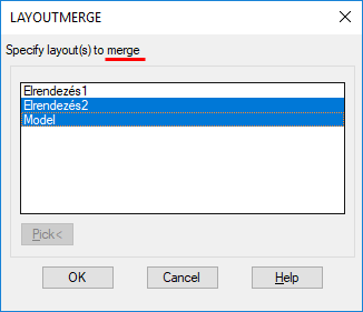 Célelrendezés megadása vagy [?] <Modell>: Adja meg egy meglévő elrendezés nevét, vagy adjon meg egy új nevet egy új elrendezés létrehozásához