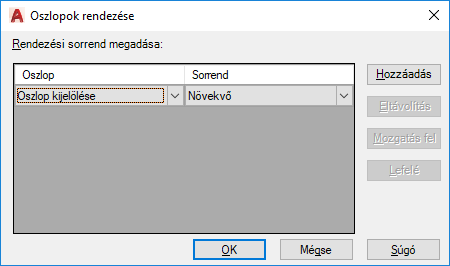 Az Oszlop listára egy új rendezésifeltétel-elemet vesz fel.