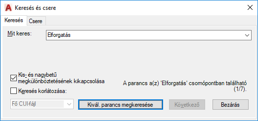 Egy üzenet jelenik meg, amely leírja a karakterlánc találati helyét, és a keresés által visszaadott találatok számát.