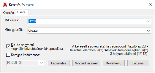 Egy üzenet jelenik meg, amely leírja a parancs találati helyét: a pontos helyét a Testreszabási beállításai vagy a Tulajdonságok ablaktáblán és a példányainak számát.