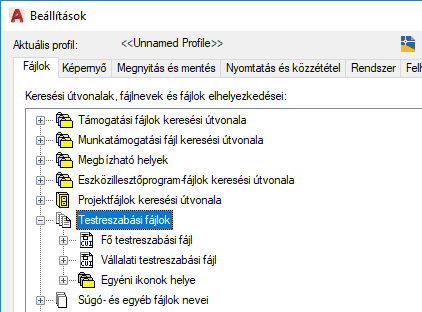 Tipp: Létrehozhat két különböző profilt, amelyeket a fő és a vállalati CUIx-fájlok közötti váltásra használhat. Az egyik profil normál konfigurációjú CUIx-fájlokkal fog rendelkezni, amelyeket a rajzolói használnak, a másik pedig a megcserélt fő és vállalati CUIx-fájlokkal rendelkezik, módosíthatóvá téve így a vállalati testreszabási fájlt.