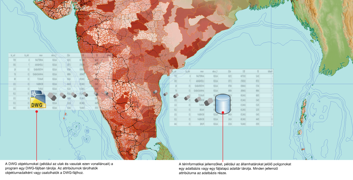 Az AutoCAD Map 3D toolset segítségével CAD-objektumokkal és térinformatikai jellemzőkkel egyaránt dolgozhat. Ezeket kombinálhatja a térképen, bármelyik adattípust szerkesztheti, valamint az adatokat át is viheti az egyik formátumból a másikba.