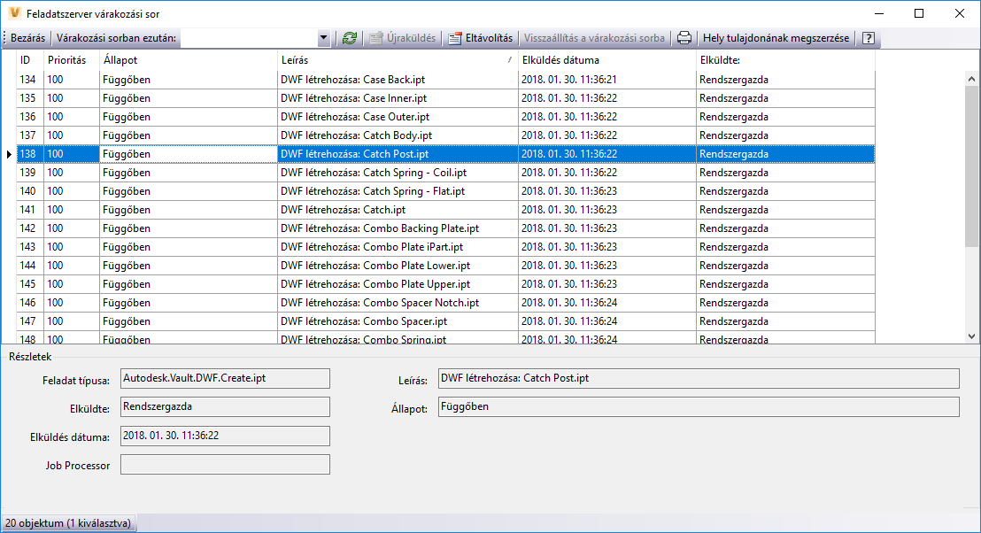 A feladatszerver várakozási sora a kliensek (Inventor, AutoCAD, Vault és Autoloader) által küldött, feldolgozásra váró feladatok listája, avagy várakozási sora. Ezt a sort a Vault szerver tárolja és kezeli.