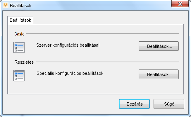 A Beállítások párbeszédpanel segítségével konfigurálhatja a szerver hitelesítő adatait és a további szerver beállításokat, például a megszemélyesítő felhasználói fiókot, az időtúllépési küszöbértéket, és a megőrzendő konzol és szerver naplófájlok számát.