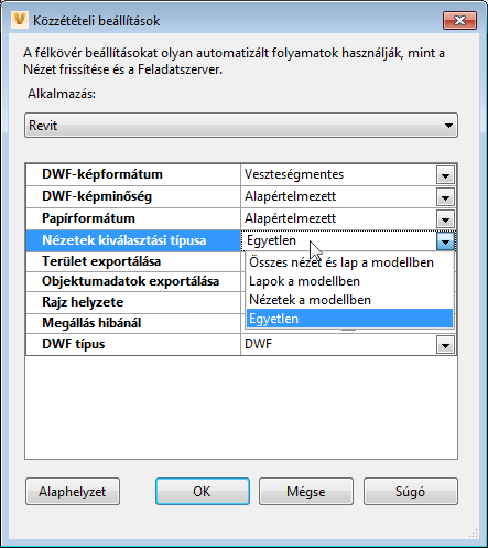Ez a táblázat tartalmazza a Revit számára elérhető közzétételi beállításokat.