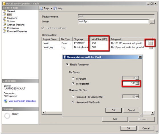 sqlcmd -E -S ".\AutodeskVault" -Q "ALTER DATABASE %VAULTNAME% MODIFY FILE