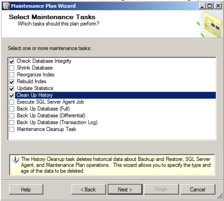 - A Karbantartási feladat kiválasztása párbeszédpanelen jelölje be a következő opciókat: