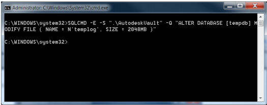 SQLCMD -E -S ".\AutodeskVault" -Q "ALTER DATABASE [tempdb] MODIFY FILE (
