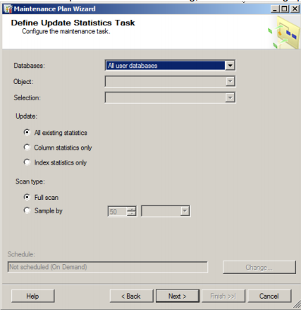 - A Frissítési statisztika meghatározása párbeszédpanelen válassza a következő opciókat: