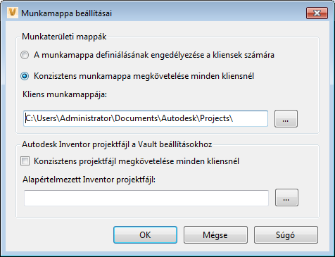 Az Autodesk Inventor Vault tárban használt projektfájlját a rendszergazda határozhatja meg.