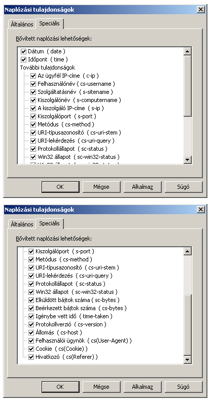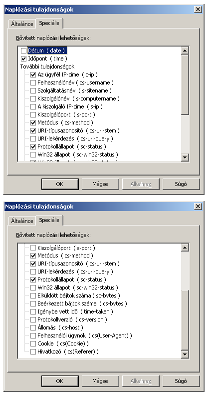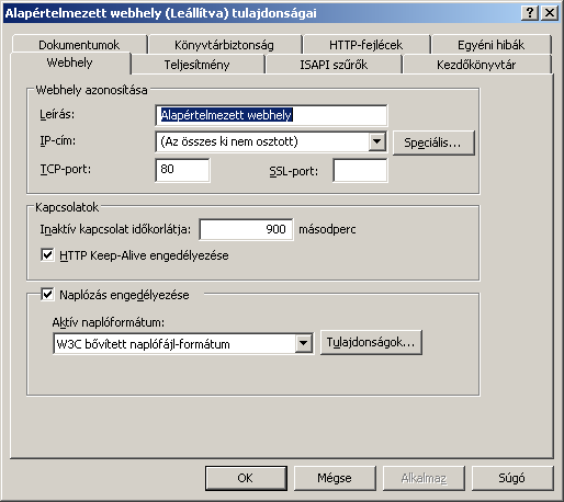 - C:\WINDOWS\system32\LogFiles\W3SVC1 – az alapértelmezett webhely kommunikációja.