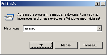 - A Windows Start menüjében válassza ki a Futtatás lehetőséget. Az IIS program újraindításához gépelje be az iisreset parancsot, majd kattintson az OK gombra.