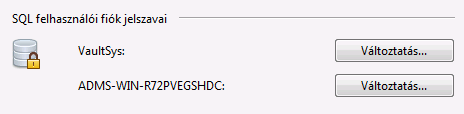 Ha a Vault telepítése megtörtént, megkapja az alapértelmezett jelszavakat a VaultSys és az ADMS _ %WeboldalNeve% SQL szolgáltatási fiókokhoz. A rendszergazda ezeket a jelszavakat biztonságosabbra módosíthatja.