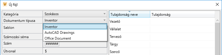 Alapértelmezés szerint az Új Standard fájl függvény a Vault tár $\Templates mappájában keres dokumentumsablonokat. Ezt az útvonalat módosíthatja a Data Standard File.xml fájljában.