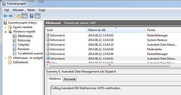 A Job Processor minden feladatot naplóz a munkaállomáson lévő Eseménynaplóba. Ez a naplófájl olyankor lehet hasznos, ha a hibaelhárítás nem sikerült, vagy a feladatok nem lettek teljesen elvégezve.