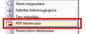 Kattintson a jobb gombbal, majd válassza a PDF létrehozása elemet. Vagy kiválaszthatja a parancsot a Műveletek menüből is. FONTOS: A PDF létrehozása parancs csak a fájl legfrissebb verziója esetében elérhető el, a 2D CAD-fájlok korábbi előzményverzióihoz és revízióihoz nem.