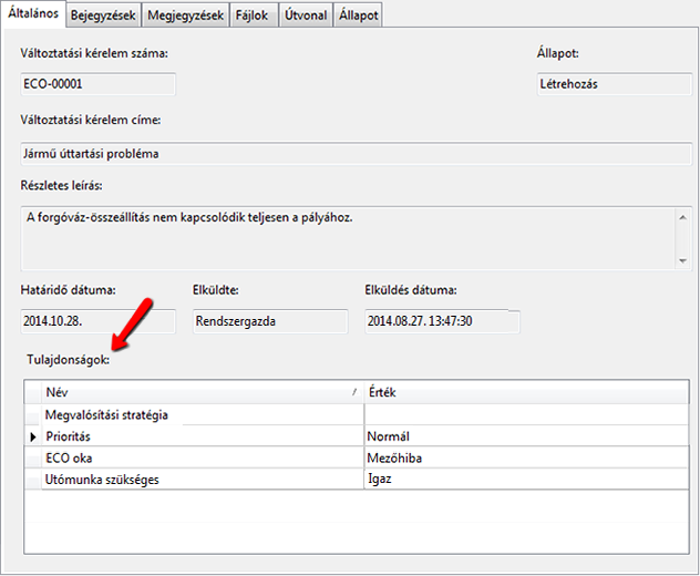 A rendszer minden (új vagy létező) változtatási kérelemhez társítsa ezt a tulajdonságot, ami ezt követően igény szerint szerkeszthető. A tulajdonság módosítása elvégezhető a változtatási kérelem Szerkesztés parancsával vagy a Tulajdonságok szerkesztése párbeszédpanelen.