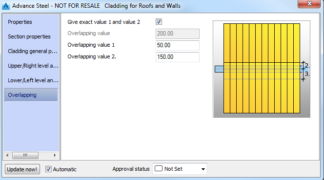 If the cladding profiles overlap, the overlapping can be set by one or two values. The overlapping values can be positive, negative or equal to zero.