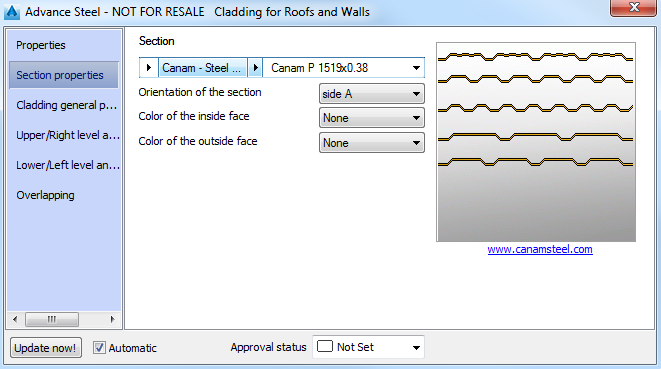 | Section class | Selects the section type for the cladding profiles. |
