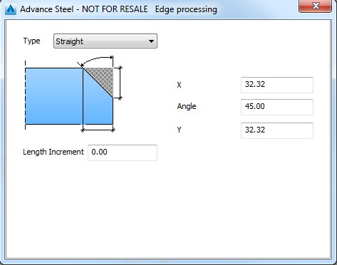 | Length Increment | Defines the increment (grid jump) for modifying the width and the length of the corner processing by grip points. |