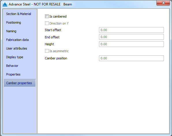Using the options on this tab of the beam properties dialog box you can create cambered beams.