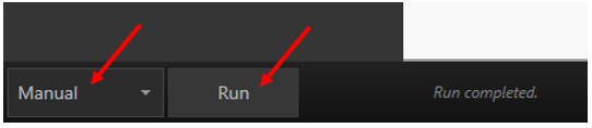 - In the bottom left corner of the Dynamo window you can switch to Manual, so that the model will only run if you click on the Run button. It is recommended that you manually run the Dynamo model after the nodes are joined correctly; this will ensure a better output and will not generate errors in Advance Steel: