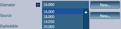 Note: You can also create a new diameter value, using the New button next to the Diameter field drop-down list, if you cannot find a suitable one in the existing list.