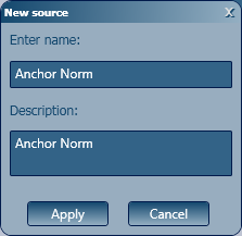 - Create a new source (norm) by clicking the New button next to the Source field drop-down list, type a new name and a description and click Apply.