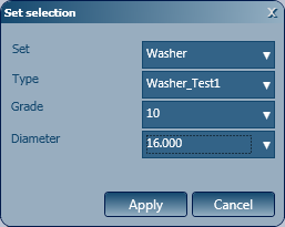 Set tab and create a new anchor assembly by clicking the New button next to the Name of bolt assembly field dropdown list, type an explanatory name (e.g. 2Na2W, which stands for a bolt set with 2 nuts (N) and 2 washers (2W) and click Apply.