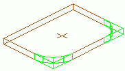 - The corner processing is created at the selected corner with a default size and shape. It is represented with a green contour processing in the model. The properties dialog box appears.