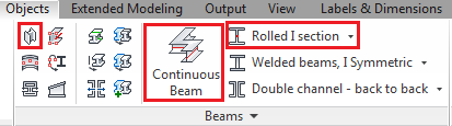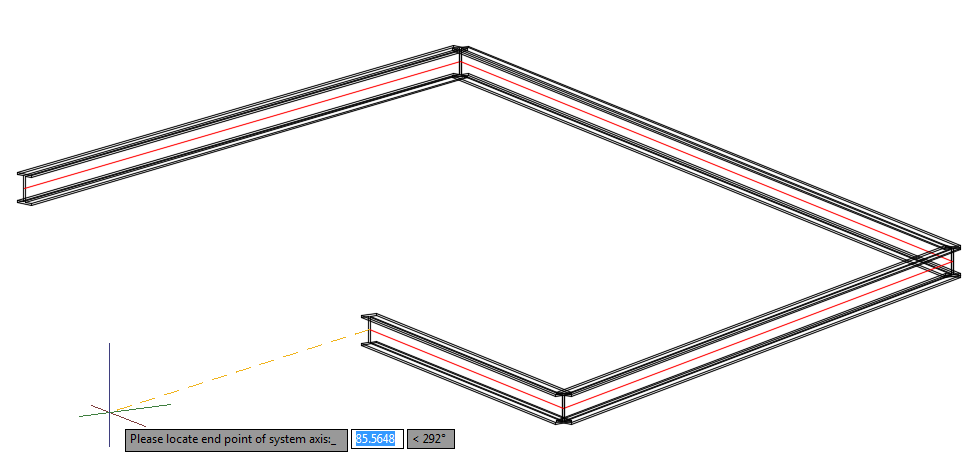 The Continuous Beam command allows you to create linked beams continuously. The command stops if you press the Esc or Enter keys or if you click the right button on your mouse.