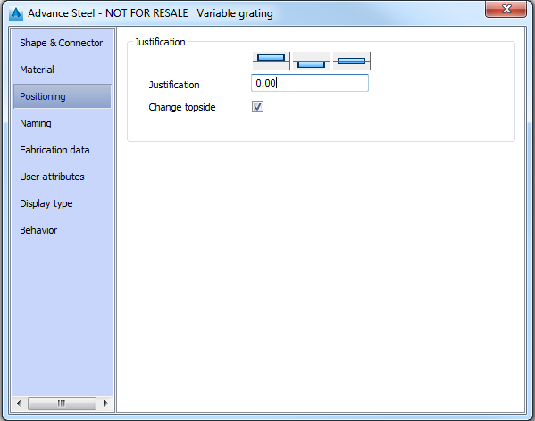 On this tab of the grating properties dialog box, you can modify the grating position relative to the insertion point and the thickness direction.
