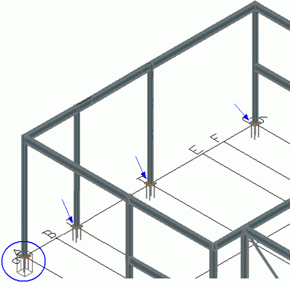 ). The created connections are independent and their properties have been modified separately. You can transfer the properties from one connection (A6) to the other three and obtain identical base plate connections.