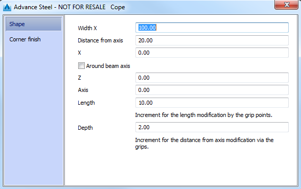 Defines the cope corner distance to the beam axis.